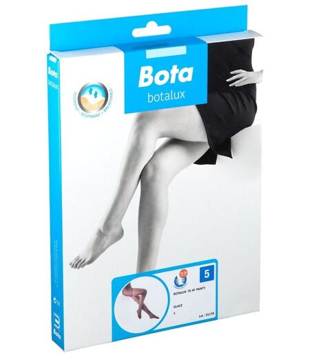 Bota Botalux 70 Bas de soutien 70 denier (15/18 mm Hg) Jarret “AD+P ou -P” Bas de soutien “AG+P” Stay-up “SU+P ou -P” Panty “AT+P” Maternity “ATM+P” (avec orteils (+P) ou sans orteils (-P)) Indications Jambes fatiguées/lourdes, profession debout/sédentaire, grossesse Composition 81% PA, 19% EL Conditionnement 1 collant ...