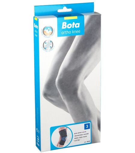 Bota Ortho DF 1110 Bandage de genou - Ouverture de la rotule Ajustement anatomique Tissu tricoté multiélastique (3D) très résistant et multiélastique Bord supérieur et inférieur extra doux Renfort latéral avec tiges Bague en silicone incorporée entourant la rotule ouverte Indications arthrose Troubles rhumatismaux Plaintes fémoro-patellaires : Chondropathie rétro-patellaire (sous-)luxation de la rotule Posttraumatique postopératoires surabondance Préventif Taille Gr. 3 : circonférence : 37 cm. Couleur : Noir. ...