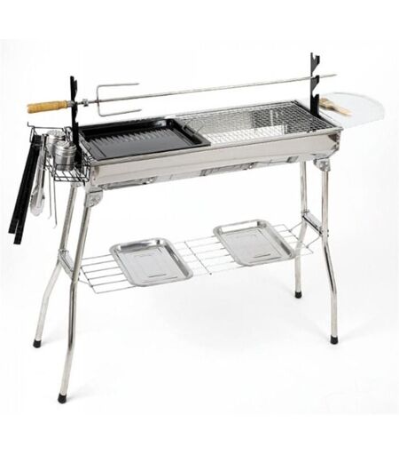 Les ustensiles présents sur les photos ne sont pas fournis avec le barbecue Barbecue Grill with Bag est fait d'acier inoxydable résistant à la rouille, ce qui garantit que la grille ne rouillera pas et sera facile à nettoyer après une utilisation prolongée. Les pieds antidérapants en caoutchouc aident la grille de barbecue à rester en place sur le sol. Grâce à sa conception pliable et détachable, cette grille de barbecue peut être facilement installée et utilisée immédiatement. Les poignées latérales et les pieds pliants facilitent le déplacement et le transport, ce qui vous permet de profiter du barbecue où et quand vous le souhaitez. Caractéristiques: Ce gril de barbecue est doté d'évents de combustion qui permettent à suffisamment d'oxygène d'entrer et à la chaleur de se répandre uniformément sur la surface de la grille de cuisson, ce qui le rend idéal pour griller des hamburgers, des brochettes, des steaks et d'autres aliments. Ce gril portable dispose d'une grande surface de ...