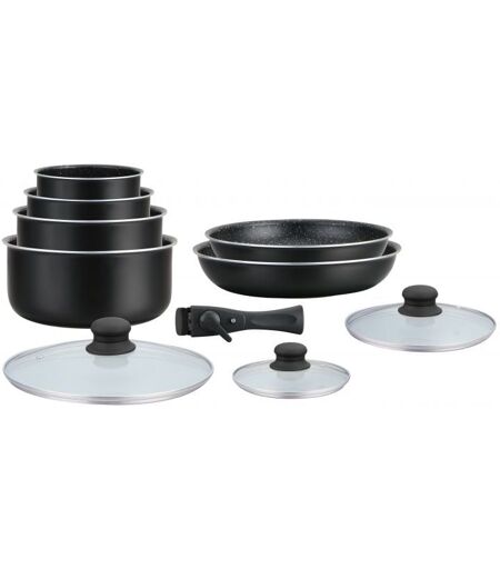 HAGEN Batterie de cuisine revêtement pierre avec manche amovible 10 pieces noir Herzberg HA04630-BLK - Noir