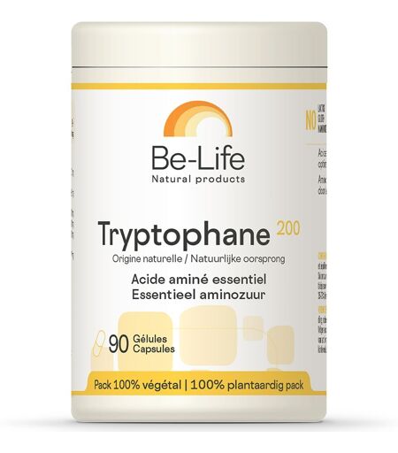 Complément alimentaire à utiliser dans le cadre d’une alimentation variée, équilibrée et d’un mode de vie sain.Un acide aminé essentiel, mais fragile…Le tryptophane est l'un des 8 acides aminés essentiels. Comme il n'est pas très abondant dans l'alimentation et de plus, résiste mal aux cuissons trop prolongées et aux chaleurs intenses, l'apport quotidien en est souvent insuffisant. Bonne nouvelle : le L-Tryptophane de Be-Life, obtenu par hydrolyse, est hautement assimilable et dénué de toute toxicité. Précurseur de la sérotonine et de la mélatonineGélules acido-résistantes pour une meilleure assimilation 1-4 gél./jour.Composition:L-TryptophaneCellulose microcristalline (agent de charge)Mg stéarate (antiagglomérant)Gél : acido-résistante (cellulose végétale + pectine)Valeur nutritionelle: Pour 4 gélulesL-Tryptophane800 mgConseil d'utilisation:Prendre 1 à 2 gélules 1 heure avant de dormir et 1 à 2 gélules juste avant le coucher ou suivant avis médicalPrécautions d'emploi:Ne pas dépasser la dose maximale, Conserver au sec et hors de portée des enfants.Poids net:90 gélulesFabricant:Bio-Life® Parc Scientifique CréalysRue Camille Hubert 335032 Isnes ...