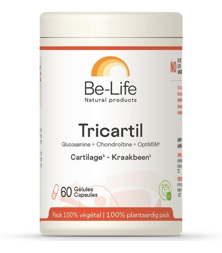 Complément alimentaire à utiliser dans le cadre d'une alimentation variée, équilibrée et d'un mode de vie sain.La synergie appréciée par vos articulationsTricartil contient non seulement de la glucosamine, de la chondroïtine et du soufre organique, mais aussi de la vitamine C qui renforce le cartilage et les tissus osseux, et du manganèse qui intervient dans les tissus conjonctifs des cartilages et articulations, l'un et l'autre parce qu'ils contribuent à la formation du collagène. Un cocktail d'actifs certainement conseillé en cas d'articulations douloureuses.IngrédientsLe sulfate de chondroïtine (source de poisson): 290 mgLe sulfate de glucosamine (origine crustacés) 261 mgOpti-MSM 261 mgCa ascorbate (vitamine C): 33 mgPidolate de manganèse: 4 mgConseils d'utilisations1 caps. / Jour max.Précautions d'emploiLes compléments alimentaires ne sont pas des médicaments et ne peuvent se substituer à un traitement médical. Ils ne peuvent être substitués à une consultation chez un médecin ou un thérapeute qu'il vous revient de contacter pour votre suivi.Poids net60 gélulesFabricantBio-Life Laboratory Srl/bvParc Scientifique Crealys, 33 rue Camille Hubert5032 Isnes - Belgique ...