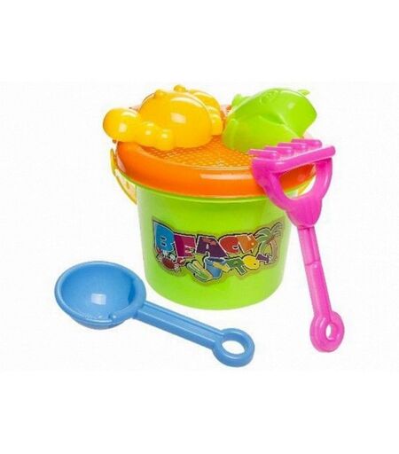set 6 pièces jouet de plage contient : 1 seau 10 x 10 cm 1 couvercle tamiseur 1 pelle 1 rateau 2 moules matière plastique couleur aleatoires marque lg normes ce ...