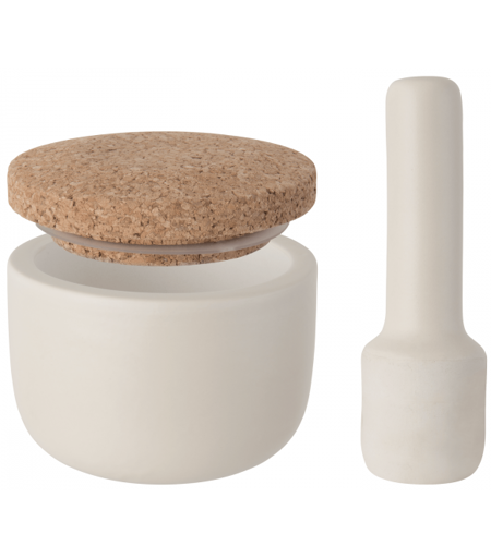 Mortier + pilon berghoff leo en grès + couvercle en liège