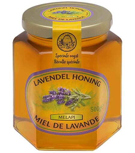 Prenez attention à une alimentation variée et équilibrée et un mode de vie sain. Miel de couleur dorée au goût sucré, frais mais également épicé. Un régal issu des fleurs violettes de lavande. Riche en bienfaits de mère nature. Composition: miel de lavande. Valeur nutritionelle: Pour 100 g Énergie 1360 kJ/320 kcal dont acides gras saturés 0,1 g Glucides 0 g dont sucres 79,3 g Protéines 0,5 g Sel 0,015 g * Apport journalier de référence Conseil d'utilisation: Prèt à déguster. Précautions d'emploi: Le miel est déconseillé aux enfants de moins de 12 mois. Poids net: 500 g Fabricant: Meli NV Handelsstraat 13 8630 VEURNE ...