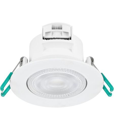 Le spot encastré à LED intégré de Sylvania présente une inclinaison verticale de 30 degrés. Il émet une luminosité de 500 lumens avec une consommation de seulement 5,0 watts, et il n'est pas dimmable. Avec un angle de faisceau de 38 degrés, ce spot est idéal pour éclairer des zones spécifiques. Son corps est fabriqué en polycarbonate blanc, assurant une durabilité tout en maintenant une apparence nette et propre. Il offre également une faible profondeur encastrée de seulement 47 mm, ce qui le rend discret et peu encombrant. Les bornes de connexion en boucle permettent un câblage rapide et efficace, simplifiant ainsi l'installation. Avec un diamètre de biseau de 86 mm et une découpe de 68-74 mm, ce spot s'adapte parfaitement à diverses configurations. De plus, il est doté d'une lentille transparente pour une diffusion de la lumière optimale. En prime, un biseau argenté supplémentaire est inclus dans l'emballage, offrant encore plus de flexibilité en matière de style et de design. ...