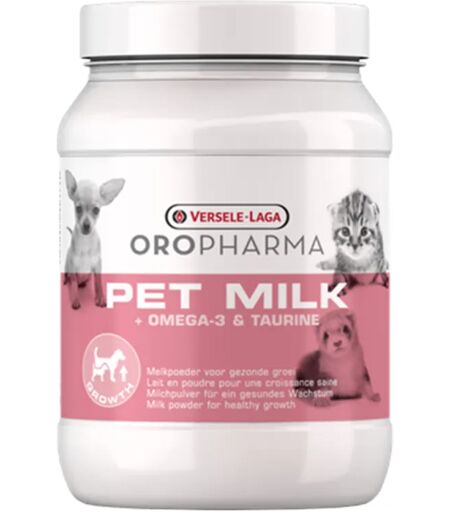 Oropharma Pet Milk – Lait maternisé pour chiots, chatons et furetons Oropharma Pet Milk est un aliment d’allaitement sous forme de poudre soluble, spécialement formulé pour nourrir les chiots, chatons et furetons orphelins ou lorsque la mère ne produit pas suffisamment de lait. Enrichi en oméga-3 et en taurine, ce lait maternisé garantit un développement sain et équilibré dès les premiers jours de vie. Une alternative au lait maternel complète et digeste : Grâce à sa composition riche en produits laitiers légers faciles à digérer, Pet Milk assure un apport optimal en protéines (28%), matières grasses (34%) et nutriments essentiels pour soutenir la croissance des jeunes animaux. Soutien du développement et du système immunitaire : Les acides gras oméga-3 renforcent le système immunitaire dès le plus jeune âge, tandis que la taurine joue un rôle crucial dans le développement sain du cerveau, des yeux et du cœur. Formule enrichie en vitamines et minéraux : Avec un complexe complet de vitamines (A, D3, E, C, B1, B2, B6, B12...), d'acides aminés et de minéraux essentiels (fer, zinc, cuivre, manganèse...), ce lait en poudre répond parfaitement aux besoins spécifiques des jeunes animaux pendant la période d’allaitement. Facile à préparer et à digérer : La poudre de lait est soluble, simple à doser et à administrer. Elle peut être introduite progressivement dans l’alimentation des petits pour compléter ou remplacer le lait maternel. Lait en poudre pour chiots, chatons et furetons Idéal pour les orphelins ou en complément de l’allaitement naturel Source d’oméga-3 pour le système immunitaire Riche en taurine pour un développement optimal Formule hautement digestible et facile à préparer Mode d'emploi l'Oropharma Pet Milk: Mélangez 20 g de Pet Milk (= 5 mesurettes rases) dans 100 ml d'eau tiède (38°C, température corporelle). Pendant les 2 premières semaines, il est conseillé de nourrir les chiots, les chatons et les furetons orphelins au biberon, puis à partir de la 3ème semaine de leur apprendre à boire dans une assiette (qui devra toujours être bien nettoyée après chaque usage). Les chiots, les chatons et le furetons qui ne reçoivent pas assez de lait maternel doivent aussi recevoir un complément de Pet Milk. Si la lactation de la mère est insuffisante, il est conseillé de lui donner également du Pet Milk, dissout dans l'eau ou saupoudré sur les aliments : 2 à 20 grammes de Pet Milk par jour en fonction du nombre de chiots et de la lactation. Augmenter la quantité de Pet Milk progressivement. ...