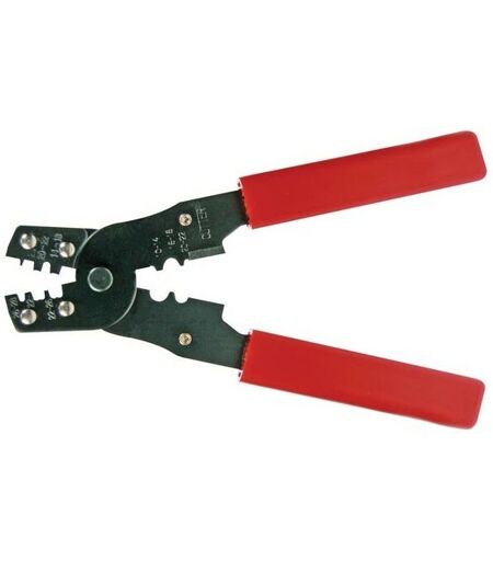 Pince à sertir pour connecteurs non-isolés Ø des câbles: AWG 10-12, 14-16, 18-20. CARACTERISTIQUES : pince pour câbles SPECIFICATIONS : longueur: 180mm broches et fiches pour ordinateur: D-sub 26-28 AWG manchons isolés: 22-26 AWG cosses téléphoniques à fourche : 22-26 AWG connecteurs non isolés: 14-22 AWG bornes non isolées: 10-22 AWG poids: 210g ...