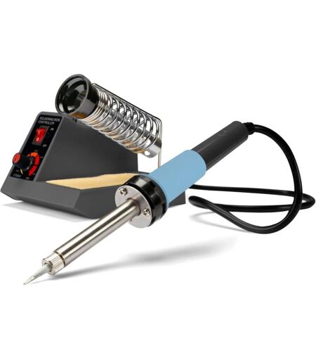 Velleman Station de soudage 40-48 w avec élément chauffant en mica, fer à souder precision, support et éponge, poste a souder etain, poste soudure, soudage