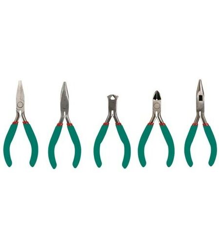 Instruments de précision (5 pcs) : pince coupante diagonale, pince coupante, pince ronde, pince plate, pince longue CARACTERISTIQUES : fourni en blister SPECIFICATIONS : contenu: pince longue: 125mm (5") pince ronde: 125mm (5") pince plate: 125mm (5") pince coupante diagonal: 110mm (4.5") pince coupante: 110mm (4.5") ...