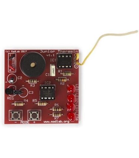 Le thérémine est le premier synthétiseur électronique. Junior Theremin est notre version compacte de cet instrument de musique électronique. Le thérémine se joue en approchant la main de l'antenne qui fait donc varier la note émise. L'instrument peut jouer des notes individuelles et faire varier la hauteur d'une note. alimentation: 9 V battery (not incl.) • dimensions: 50 x 50 x 12 mm / 1.9 x 1.9 x 0.5'' ...