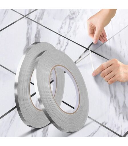 FITAGS Carrelage Autocollante Ruban Adhésif Décoratif,Étanche Joint Ligne Bande,pour Sols, Murs, Plafonds,Portes et Fenêtres,Home Déco (2(0.5cm50m),Argent)——