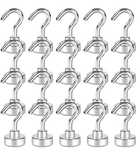 FITAGS Lot de 20 crochets magnétiques, 1.5kg + aimant puissant avec crochet pour réfrigérateur, crochet de croisière robuste pour plafond, crochet magnétique