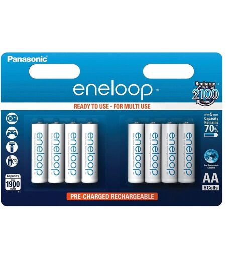 Sanyo Panasonic Eneloop Lot de 8 piles rechargeables LR06-AA 1900 mAh Blanc
