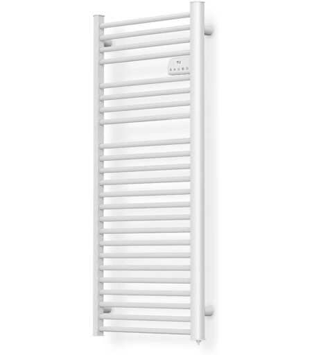 Ce radiateur sèche serviettes sans fluide de la marque WarmTech s?intégrera aisément dans votre salle de bain grâce à son design compact et épuré. Il vous assurera une montée en température rapide et vous pourrez facilement choisir la température désirée grâce à son thermostat électronique avec affichage LCD. Sept programmes pré définis (P1 ? P7) sont disponibles mais vous pourrez les modifier à votre convenance. Il est aussi équipé de 4 modes (confort ? Eco ? anti gel, Boost) et d?une fonction détection de fenêtres ouvertes. Caractéristiques : - Puissance: 750 W - Équipé d?une thermostat avec un réglage de température de 5 à 30° - Affichage digital de la température avec display LCD (fil pilote 6 ordres) - Classe II - Indice de protection : IP24 - Détection automatique de l'ouverture et fermeture des fenêtres (Lorsqu?une fenêtre est ouverte, le radiateur détecte automatiquement une baisse de la température ambiante et abaisse sa propre température. Une fois la fenêtre refermée, il remonte sa température. Ainsi, il évite de chauffer la pièce inutilement) - Fixations murales incluses - Dimensions: 119.9 x 53.6 x 12 cm - Poids : 5.3 kg - Garantie 2 ans ...