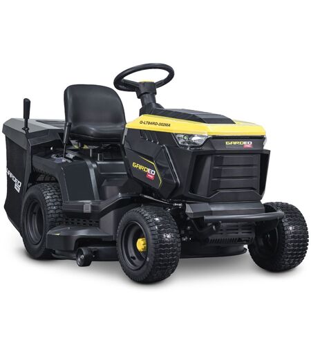 Le tracteur tondeuse Gardeo Pro est équipé d?un moteur Loncin de 352cc / 7.2Kw et dispose d?un bac de ramassage arrière de 280L. Cette tracteur tondeuse dispose de 5 vitesses avant ( 2.23 / 3.53 / 5.29 / 6 et 8.64 km/h) ainsi que d?une vitesse arrière ( 2.7km/h) afin de vous garantir un meilleur contrôle lors de la tonte. Le plateau de coupe de 83cm est équipé de 2 lames et d?un réglage de la hauteur de coupe centralisé avec 6 positions (de 30 à 90mm) Le tracteur dispose d?une fonction mulching qui consiste à répandre l?herbe coupée sur votre gazon. Cette technique permet de fertiliser votre gazon et permet d?obtenir une herbe plus verte et en meilleure santé. Pas besoin de vider le bac ni de devoir transporter les déchets de tonte à un point de collecte. Caractéristiques : - Moteur 352CC ? 7.2KW - Démarrage électrique (batterie 12V 18Ah) - Largeur de coupe: 83cm - 5 vitesses avant: 1) 2.23km/h - 2) 3.53km/h - 3) 5.29km/h - 4) 6km/h ? 5) 8.64km/h - 1 marche arrière: 2.7km/h - Hauteur de coupe centralisée 6 positions: 30-90mm - Diamètre des roues: avant 38cm - arrière 45cm - Bac récolteur 280L - Capacité du réservoir d'essence: 8.5L - Capacité du réservoir d?huile : 0.8L (SAE20W40) - Convient pour un terrain de max 3000M² - Pente max : 17% - Nettoyage du carter intégré - Système de suspension pour un renfort de la structure du châssis et un meilleur confort d'utilisation - Système d'éjection arrière intégré dans la structure afin d'éviter tous bourrages d'herbe - Fonction mulching - Equipé de phares Led - Poids net : 218 kg. ...