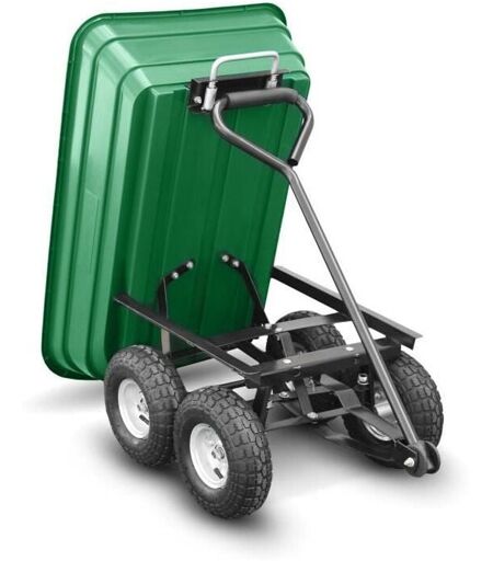 Chariot de jardin robuste avec benne basculante Ce chariot de jardin ELEM Garden Technic allie solidité et praticité pour vos travaux extérieurs. Avec sa structure résistante et sa benne basculante, il facilite le transport de charges jusqu'à 250 kg comme le bois, la terre ou le sable. Ses dimensions généreuses (93 x 50,5 x 51 cm) en font un allié polyvalent pour l'aménagement de votre espace vert. Mobilité optimisée pour un usage intensif Équipé de roues en caoutchouc et d'une poignée ergonomique, ce chariot assure un déplacement fluide sur tous types de surfaces. La benne basculante permet un déchargement précis sans effort, idéal pour les chantiers de jardinage répétitifs ou les projets de bricolage. Conception pratique pour un rangement facile D'un poids de 14 kg seulement, ce chariot plastique noir et vert combine légèreté et robustesse. Son design compact permet un stockage aisé dans votre abri de jardin ou garage, tandis que sa matière résistante aux intempéries garantit une ...
