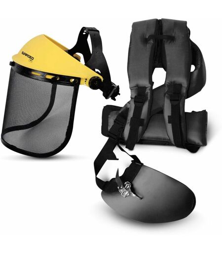 1) KIT DE PROTECTION VISAGE Protège des projections de particules lorsque l'on débroussaille ou tronçonne Tour de tête ajustable (52 - 64cm) 2) HARNAIS UNIVERSEL POUR DEBROUSSAILLEUSE Cet harnais est à la fois souple , renforcé et permet un grand confort de travail ! EXTRA CONFORT Normes: EN397:2012 - A1:2012 - EN1731:2006 Garantie: 5 ans ...