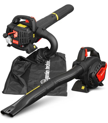 Idéal pour vous débarrasser rapidement et facilement des feuilles recouvrant votre jardin, cet aspirateur-souffleur de feuilles de la marque Elem Garden Technic est équipé d'un moteur thermique de 25.4 CC et dispose d'une vitesse de soufflerie de 245 km/h. Afin de vous éviter un grand nombre de trajets vers le compost, il est équipé d'un sac récolteur de 35 L et dispose d'une fonction broyage. Léger, il offre un confort d'utilisation et une maniabilité optimale. Il est fourni avec un sac d'une capacité de 60L permettant de collecter les feuilles mortes. Caractéristiques : - Puissance: 25.4 CC / 0.75 Kw - Volume d'air max: 540 M³/h - Vitesse soufflerie: 245 km/h - Ratio de broyage : 10 :1 - Capacité du sac: 35 L - Capacité du réservoir d'essence: 450 ml - Mélange essence 1 :40 - 3 en 1 : Aspirateur / Souffleur / Broyeur ...