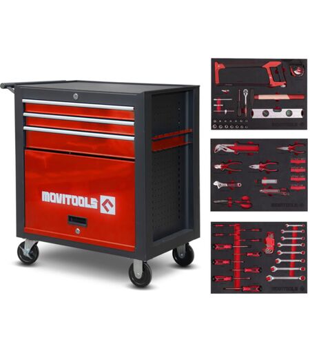 Movitools - Servante d'atelier 3 tiroirs + espace de rangement + accessoires