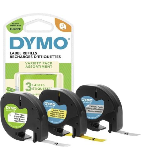 91241 Ruban d'étiquetage jeu de 3 Couleur de ruban: hyper-jaune, argent, blanc Couleur de police: noir 12 mm 4 m s - Dymo
