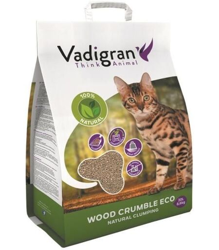 VADIGRAN Litiere Wood Crumble - 20 L - Pour chats Litiere en crumble de bois de sapin - 100% naturel - Forme rapidement et efficacement des agglomérats - L'humidité et les odeurs désagréables sont absorbées de maniere optimale - 20 L - Pour chats ...