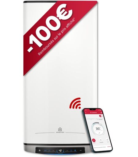 Ariston - velis evo dune dry wifi 80L – Chauffe-eau électrique plat et connecté – 25% d'Économie d'Énergie – Flexibilité Energétique