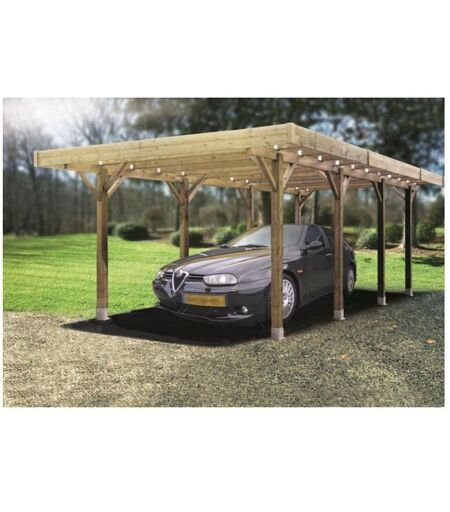 Caract?ristiques et avantages. Ce carport sert de parking et prot?ge votre v?hicule : le carport r?duit la condensation sur votre v?hicule, ce qui r?duit le risque de rouille et ?vite le gel en hiver. En ?t?, le carport prot?ge votre v?hicule des rayons br?lants du soleil. Le bois trait? subit une impr?gnation sous pression en autoclave qui aura pour effet d'emp?cher la destruction du bois par les insectes et/ou les champignons. Fiche technique. Largeur avec d?bordement du toit 5,064 m. Profondeur avec d?bordement du toit 5,064 m. Hauteur maximale 2,730 m. Surface avec d?bordement du toit 25,64 m?. Dimension des poteaux de sout?nement 120 x 120 mm. Largeur utile 3,900 m. Profondeur utile 5,064 m. Hauteur utile 2,310 m. Forme de la toiture plate. Bois trait? oui, impr?gnation autoclave. Essence de bois sapin du Nord certifi? Plancher non. Bois peint non. Montage ? monter soi-m?me. Marque Solid Superia. Mod?le Carport S7723 Garantie :. Tous les garages Solid b?n?ficient d'une garantie de 2 ans contre les vices de fabrication. ...