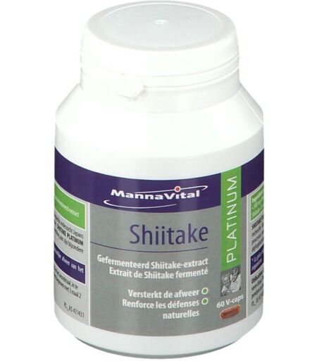 Complément alimentaire à utiliser dans le cadre d’une alimentation variée, équilibrée, d’un mode de vie sain.Shitake Platinum de Mannavital contient avec le AHCC (Active Hexose Correlated Compound) un extrait Japonais scientifiquement recherché du mycélium du champignon shiitake.Shitake Platinum est obtenu par un processus particulier de fermentation et doit son action à ses carbohydrates particuliers, les alphaglucanes. Composition: Lentinula edodes, agent d'enrobage (triglycéride acide stéarique), enrobage de la gélule (hydroxypropylmethylcellulose), maltodextrine, agent de charge (cellulose microcristalline), alpha cyclodextrine.Valeur nutritionelle: Pour 1 capsule% VNR*Extrait concentré de Shiitake230 mg *Valeur nutritionnelle de référence Conseil d'utilisation: 2 capsules par jour, de préférence au petit déjeuner et au diner, avec un verre d'eau. Pour un accompagnement intensif, commencer l'utilisation avec 3 fois 2 capsules par jour, pendant au moins 3 semaines.Précautions d'emploi: Ne pas dépasser la dose journalière conseillé. Conserver au frais, au sec et à l'abri de la lumière. Tenir hors de la portée des enfants.Poids net: 36 g = 60 V-capsFabricant:MannavitaZuidstraat 108560 Wevelgem ...