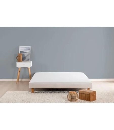 DEKO DREAM Sommier tapissier RAKENNE en bois pin massif blanc 160x200 - 12 lattes fixes - Coutil 100% polyester - Hauteur 12 cm - Pieds cylindriques - Toile de fond anti-poussiere - Encastrable - Fabrication européenne. ...