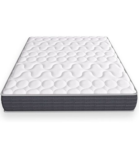 • Matelas tri-technologies • Mousse haute résilience 35kg/m3 • Mousse à effet mémoire de forme • Ame mousse haute densité • Epaisseur du matelas : +/- 22 cm • Fibre thermorégulatrice 90gr • Plate bande 3D fresh • Soutien ferme • 7 zones de confort • Indépendance de couchage • Aux normes Oekotex® • Garantie 5 ans • Le matelas reprend sa forme initiale entre 48 et 72h • Attention : une différence de +/- 3 cm de hauteur est possible. Cela est dû à la couture du coutil et n'altère en rien les propriétés de votre matelas. ...