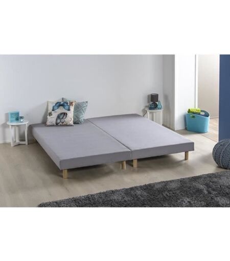FINLANDEK Sommier tapissier a lattes RAKENNE 2x90x200 gris - Hauteur 12 cm - 12 lattes fixes pieds cylindrique 15 cm en bois hetre - Coutil gris 100% polyester - Bonne aération - Toile de fond anti-poussiere - Garantie 7 ans : 5 ans 2 ans offertes - Fabrication européenne. ...