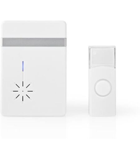 NEDIS Kit de sonnette sans fil - Alimentation par pile - 36 mélodies - Blanc et aluminium - Kit de sonnette sans fil - Alimenté par pile - 3 V DC - 2x AA - 1x CR2032 - Batteries incluses - Volume : 80 dB - Portée du signal : 300 m - IP44 - 36 mélodies intégrées pour s'adapter ... ...