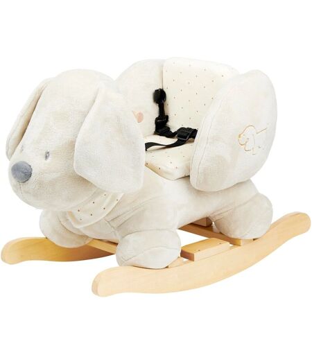 Jouet à bascule Charlie le chien vanille. La bascule est réalisée dans une matière très douce. Grâce à la ceinture, bébé s'amusera en toute sécurité. La bascule s'utilise de 10 à 36 mois. Les dimensions de Charlie le chien vanille à bascule sont de 63,5 cm de long, 33,5 cm de largeur et 46 cm de hauteur. Le harnais de sécurité, le dossier et les accoudoirs, ainsi que les poignées en bois ren ...