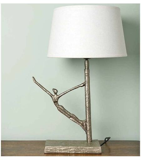 Envie de liberté ? Cette magnifique lampe en résine de couleur argent répresente avec élégance et délicatesse le chic du danseur qui est représenté dessus. Cette lampe est accompagné de son abajour en lin blanc de 30cm de diamètre. 32x10x24cm CHEHOMA Sur un buffet, un bout de canapé ou sur une table de chevet cette lampe trouvera sa place avec aisance dans votre décoration ! Excellente idée cadeau ! ...