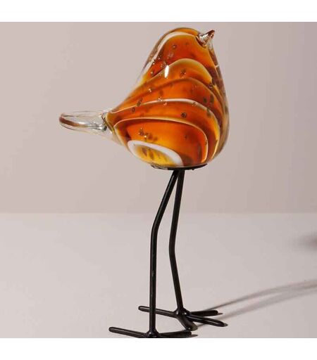 CHEHOMA Oiseau ambre crème or sur pied 18x11x6cm