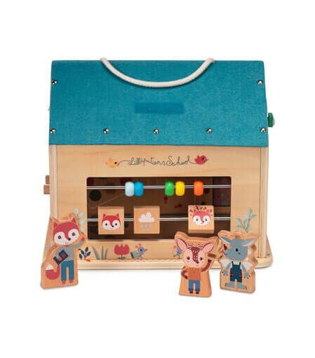 Stella et Joe partent à l'école avec leur cartable en feutrine sur le dos. Mademoiselle Alice, la maîtresse, prépare sa classe en vue d'une journée d'école agréable avec ses élèves. Cette merveilleuse école en bois comprend tous les éléments pour reconstituer une journée d'école. Elle stimule tant la motricité fine que l'imagination. ...