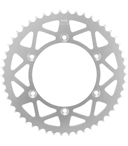 Couronne de transmission de 50 dents au pas de chaine de 520 neuve en aluminium de coloris gris de marque AFAM. Dimensions: - Nombre de dents : 50 - Pas de chaine : 520 - Diamètre intérieur de centrage (alésage) : 130mm - Épaisseur : 6mm - Nombre de trous : 6 - Diamètre des trous : 8.7mm - Entre axe des trous: 150mm - Déport: aucun Vendue nu à l'unité. Livrée conforme à la photo. ...