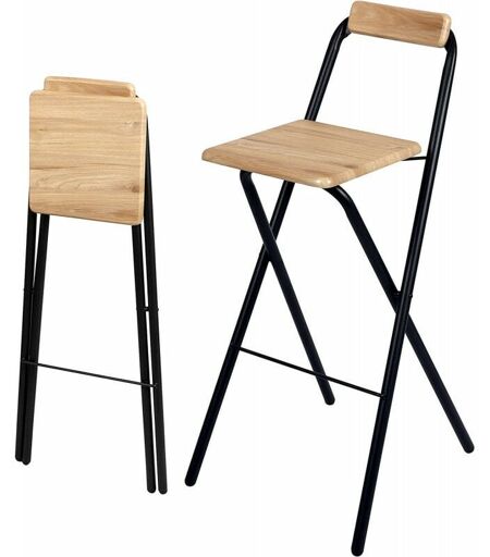 URBAN LIVING Tabouret de bar pliant avec dossier FRIENDS - Bois et noir - Bois et métal - L 48 x P 43 x H 98 cm - Livraison gratuite