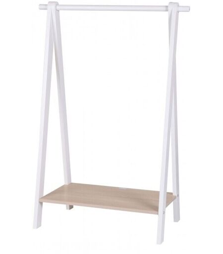 Portant en bois pour chambre enfant. Ce porte vêtements enfant comprend une penderie et une étagère vous permettant de disposer chaussures, sacs, jouets, peluches... Dimensions : Longueur 70 cm x largeur 38cm x Hauteur 100cm Couleur : Bois et Blanc Matière : Bois MDF ...