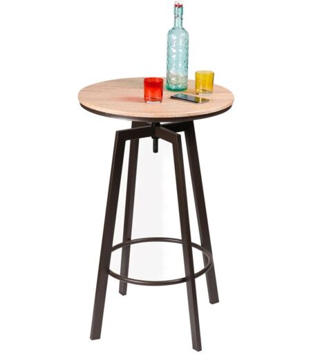 Table de bar style table d'usine avec pieds en métal noir et plateau rond en bois MDF. Cette table haute de bar est ajustable en hauteur permettant de s'adapter à vos envies. Dimensions : Haut. de 93cm à 101cm x Diam. 60cm Couleur : Bois et Noir Matière : Bois MDF et Métal ...