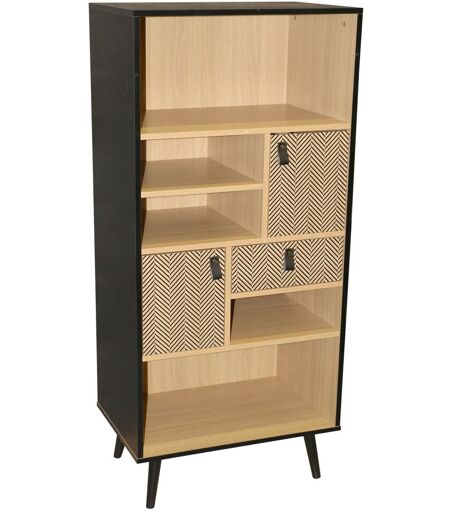 En quête d'un meuble de rangement tendance ? Cette bibliothèque bicolore vous charmera ! On aime son design contemporain, le mélange des couleurs de sa structure peinte en noir et de ses rangements couleur bois naturel. Dotée de deux portes, d'un tiroir et de cinq niches, elle offrira un espace de rangement parfait pour accueillir vos livres et vos objets de décoration. FICHE TECHNIQUE - Structure de la bibliothèque en contreplaqué. - Revêtement en polyuréthane papier imprimé. - ...