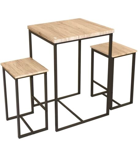 Set comprenant une Table de bar carrée avec pieds en métal noir et plateau en bois MDF et 2 tabourets de bar avec repose-pieds. Dimensions Table : Longueur 60cm x largeur 60cm x Hauteur 88cm Dimensions Tabouret : Longueur 40cm x largeur 30cm x Hauteur 60cm Couleur : Bois et Noir Matière : Bois MDF et Métal ...