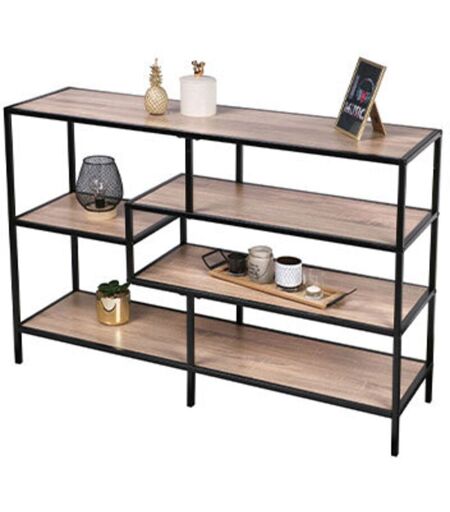 WADIGA Bibliothèque COLORADO 5 étagères - Noir mat et bois - Bois et métal - 114 x 33 x H 76 cm - Livraison gratuite