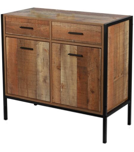 Commode en bois comprenant 2 tiroirs et 2 portes. Dimensions : 84x40x79cm Couleur : Bois, Noir Matière: Panneaux de particules 15mm recouverts d'un placage PU imprimé ...