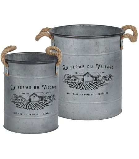 Découvrez ce très joli lot de 2 pots à fleurs décorés avec poignées à l'inscription La Ferme du Village . Une belle idée déco pour un style au charme rustique. Informations sur le lot de 2 pots à fleurs : Dimensions petit : D. 19 x H. 22 cm Dimensions grand : D. 23,5 x H. 25 cm Matière : métal Poids : 920 g ...