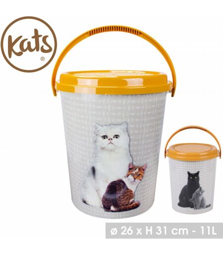 AC-DECO Seau à croquettes hermétique décor chats - Gris et jaune - Plastique - d 26 x h 31 cm - 11L - Livraison gratuite