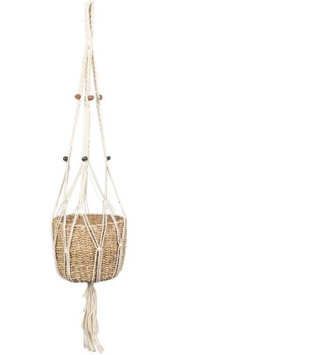 Porte Plantes Cache-Pot Macrame Suspension Pour Plantes En Macramé Casame Panier Suspension Macramé Avec Porte Plantes En Algue Marine- D25 H120cm