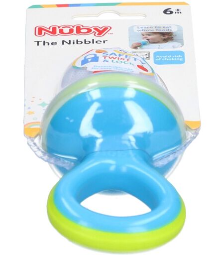 La tétine alimentaire Nûby avec capuchon aqua aide les bébés à découvrir les premiers aliments solides en toute sécurité. Le filet en nylon évite l’ingestion de gros morceaux. Grâce à sa poignée ergonomique, elle est facile à tenir par les petites mains. Le système de fermeture sécurisé ne peut être ouvert que par un adulte. Recommandée à partir de 6 mois. USP / Key Facts Convient dès 6 mois Filet en nylon Capuchon de protection inclus Fermeture sécurisée pour adultes uniquement Poignée ergonomique adaptée aux petites mains Utilisation Pour initier bébé aux aliments solides en toute sécurité. À utiliser sous la surveillance d’un adulte. ...