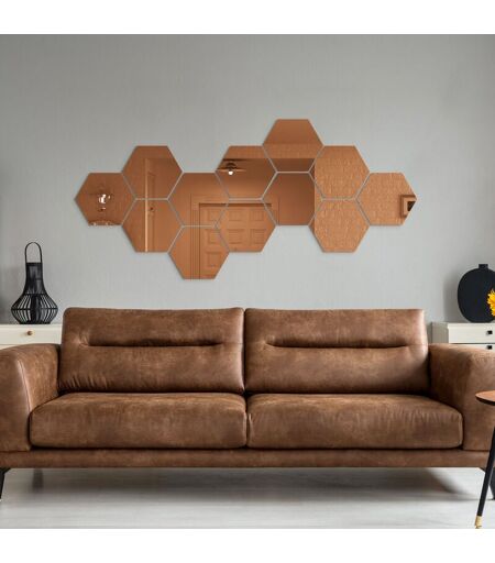 Ambiance-sticker - 12 stickers miroirs hexagonaux rose or - Autocollants stickers adhésifs effet miroir